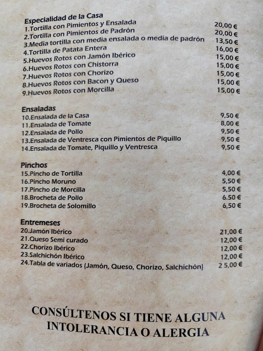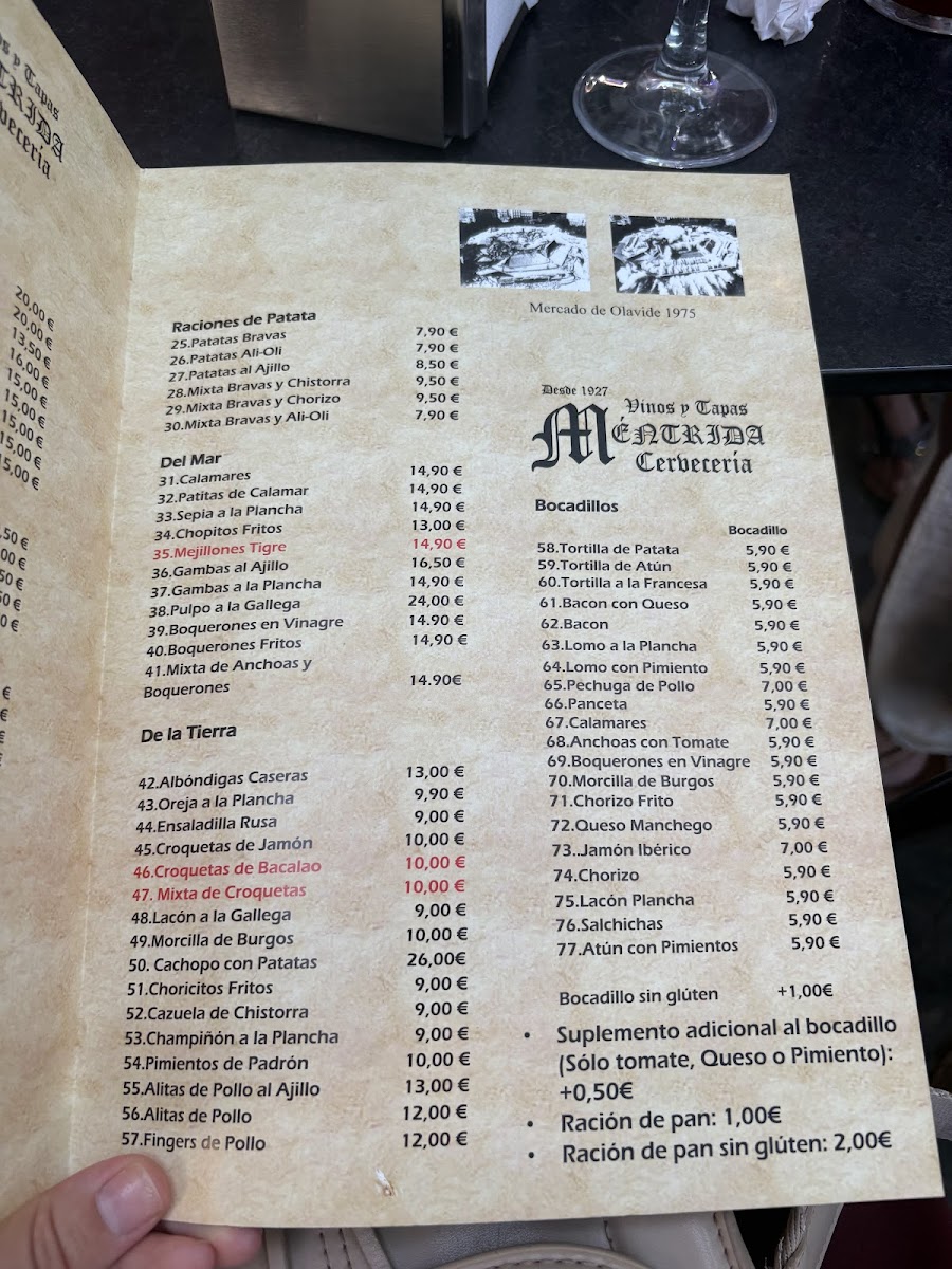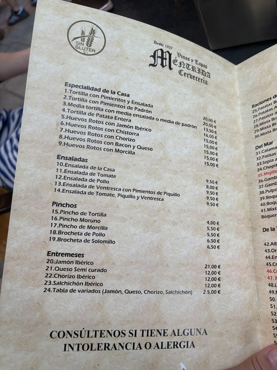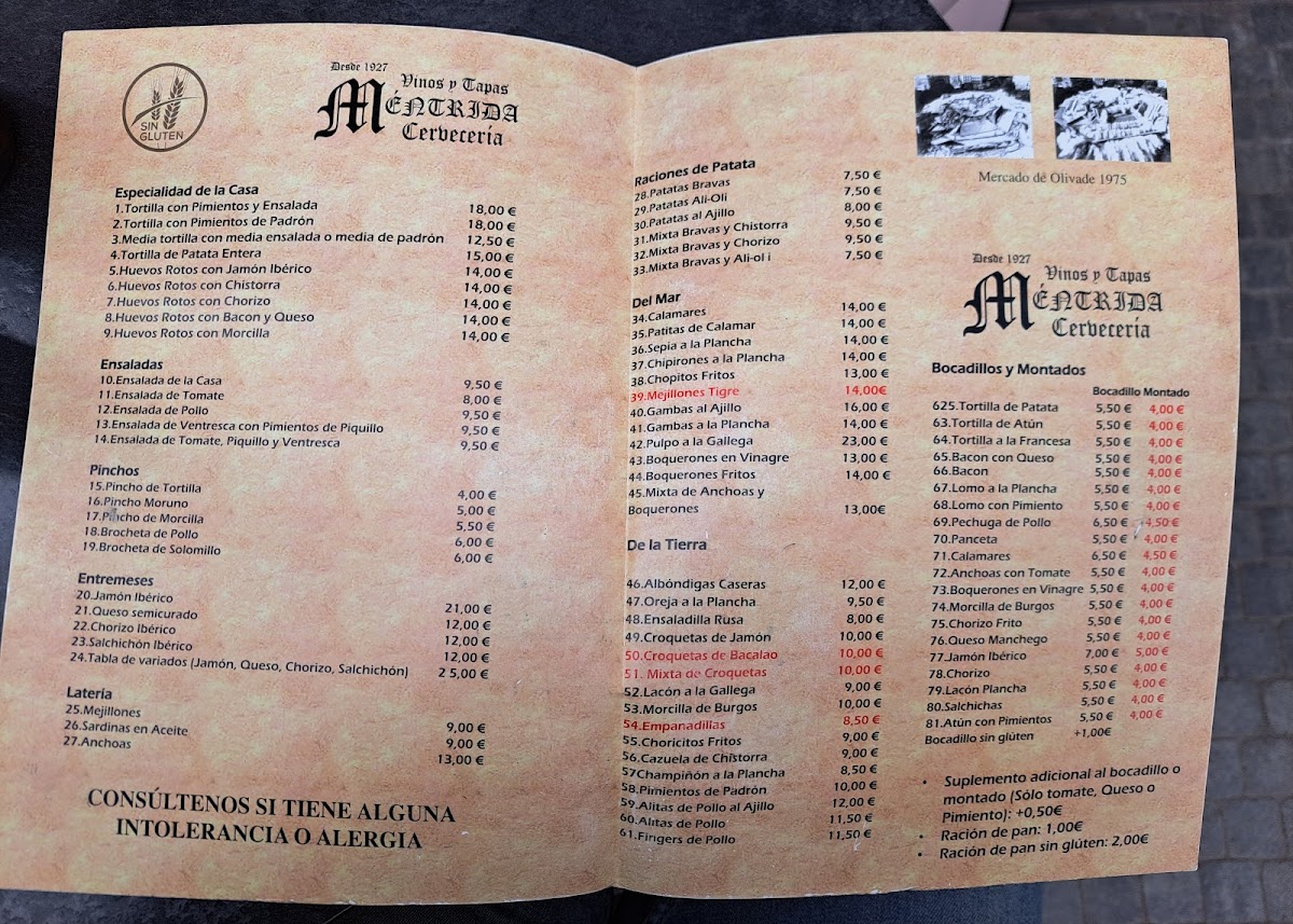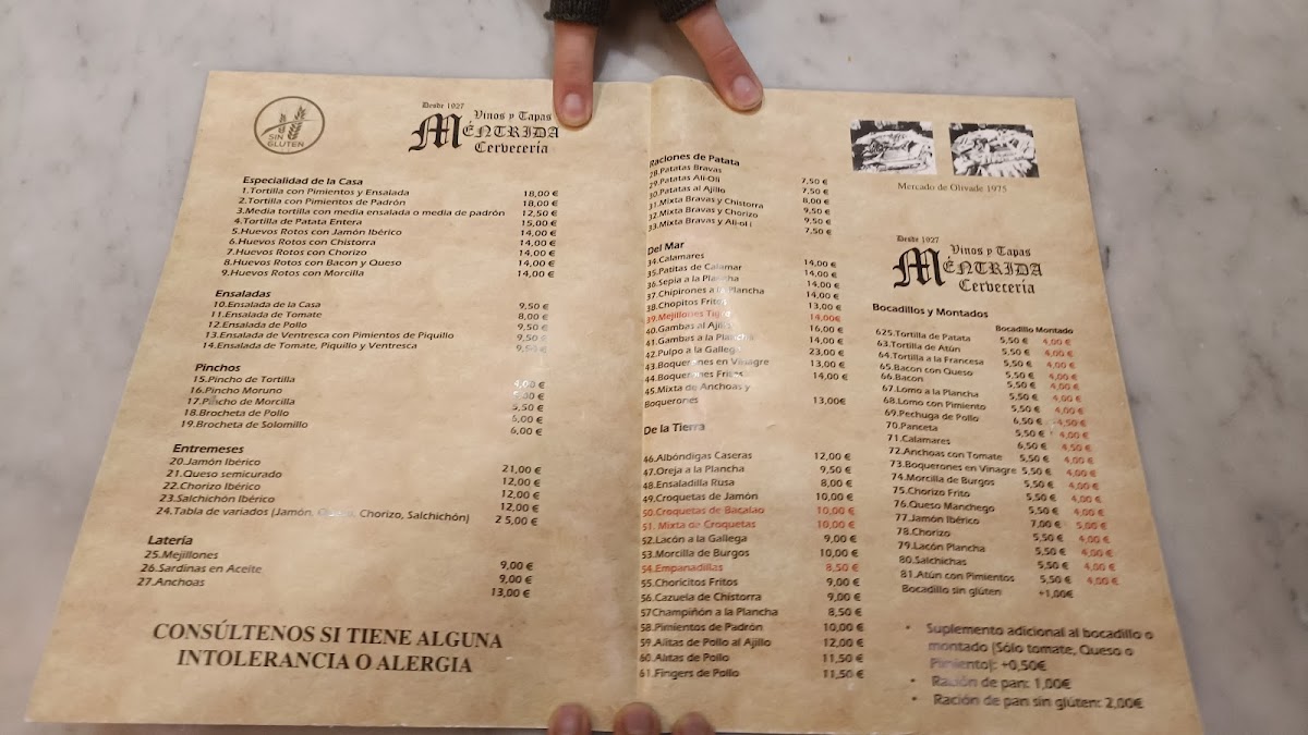 Bar Méntrida Cervecería offers a straightforward and welcoming tapas menu that fits perfectly with its lively, friendly atmosphere in the heart of Chamberí. The selection focuses on classic Spanish bites, from hearty patatas bravas to freshly fried boquerones and dishes designed with gluten-free options in mind.